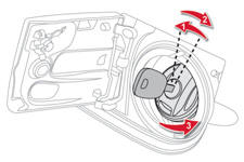 Stecken Sie nach dem Öffnen der Tankklappe den Schlüssel in das Tankschloss, drehen Sie ihn leicht nach links und dann wieder nach rechts.
