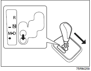 Wenn Sie den Schalthebel nach einem unbeabsichtigten Verschieben von "N" wieder auf "M" zurücksetzen, legt die Automatik den der Fahrzeuggeschwindigkeit entsprechenden Gang ein.
